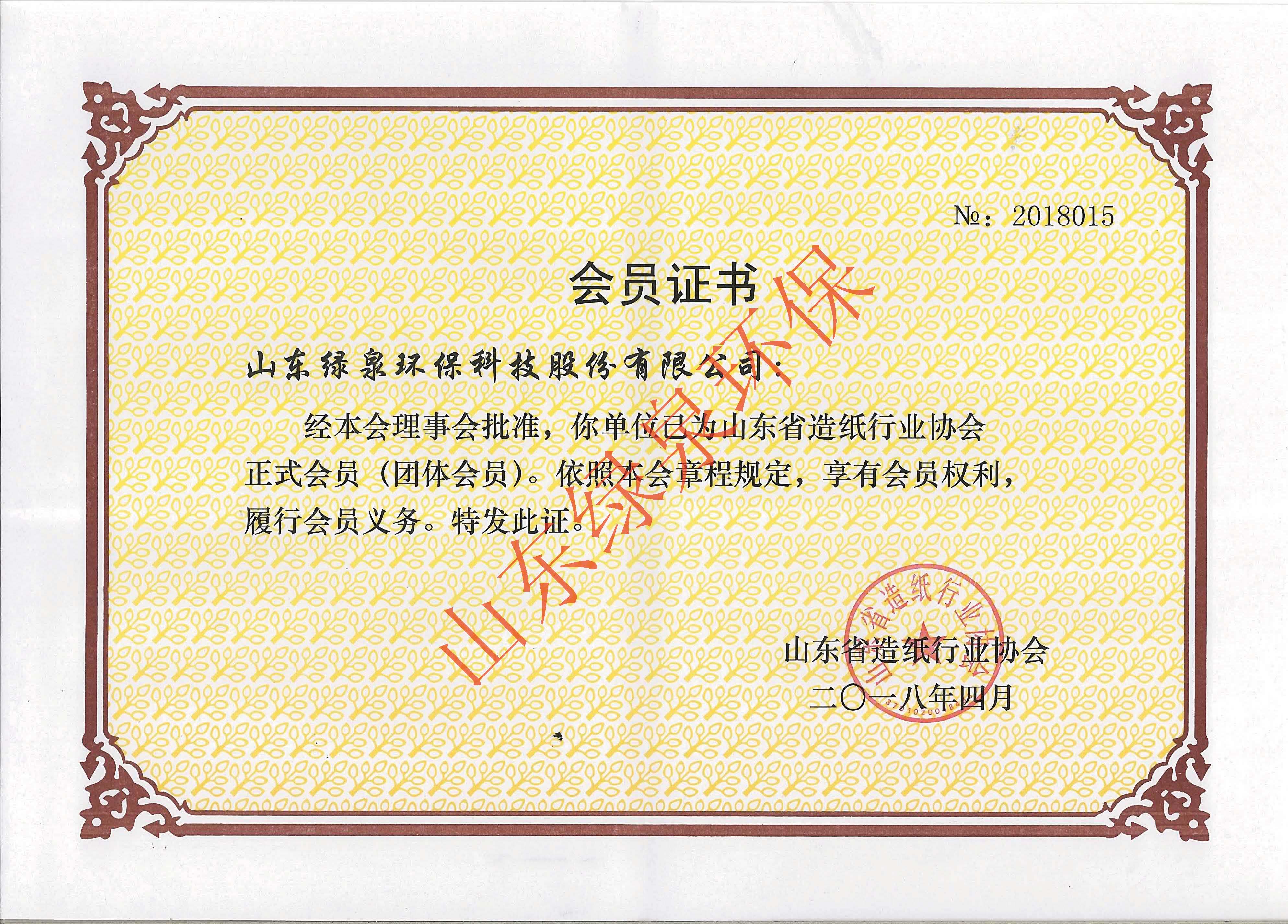 广东造纸行业协会会员证