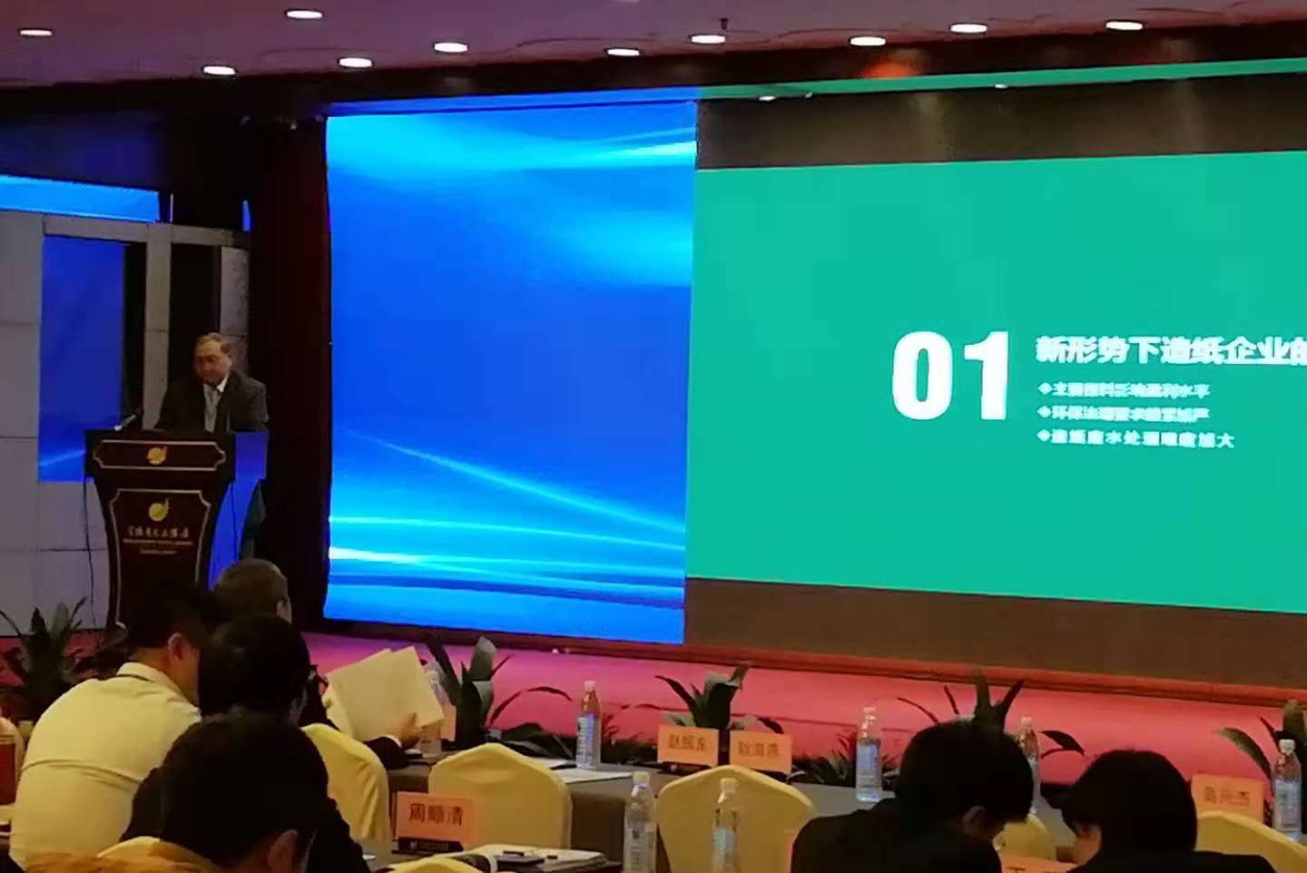 会议中,我公司董事长周焕祥研究员发表了“精准施策 科学实现废纸造纸废水低成本运行”的主题演讲,针对当下造纸行业的痛点问题以及目前山东省排放标准提高对造纸企业废水处理产生的影响等进行了立体、全面、深刻的剖析。针对这些问题,周总为业内同仁分享了我公司近年来在造纸行业废水处理领域的成功经验,提出了如何在利用现有设施的前提下,既能可靠达标,又能实现低投入、低成本运行的具体措施。周总的精彩发言受到了与会各位嘉宾、专家、造纸企业负责人的一致好评与肯定,纷纷表示希望与我公司有进一步的交流与合作。