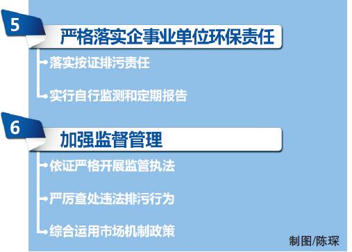 《方案》指出,环境保护部门要加强监督管理。依证严格开展监管执法,重点检查许可事项和管理要求的落实情况,严厉查处违法排污行为;综合运用市场机制政策,引导企事业单位主动削减污染物排放。要强化信息公开和社会监管,2017年基本建成全国排污许可证管理信息平台,及时公开企事业单位自行监测数据和环境保护部门监管执法信息。
