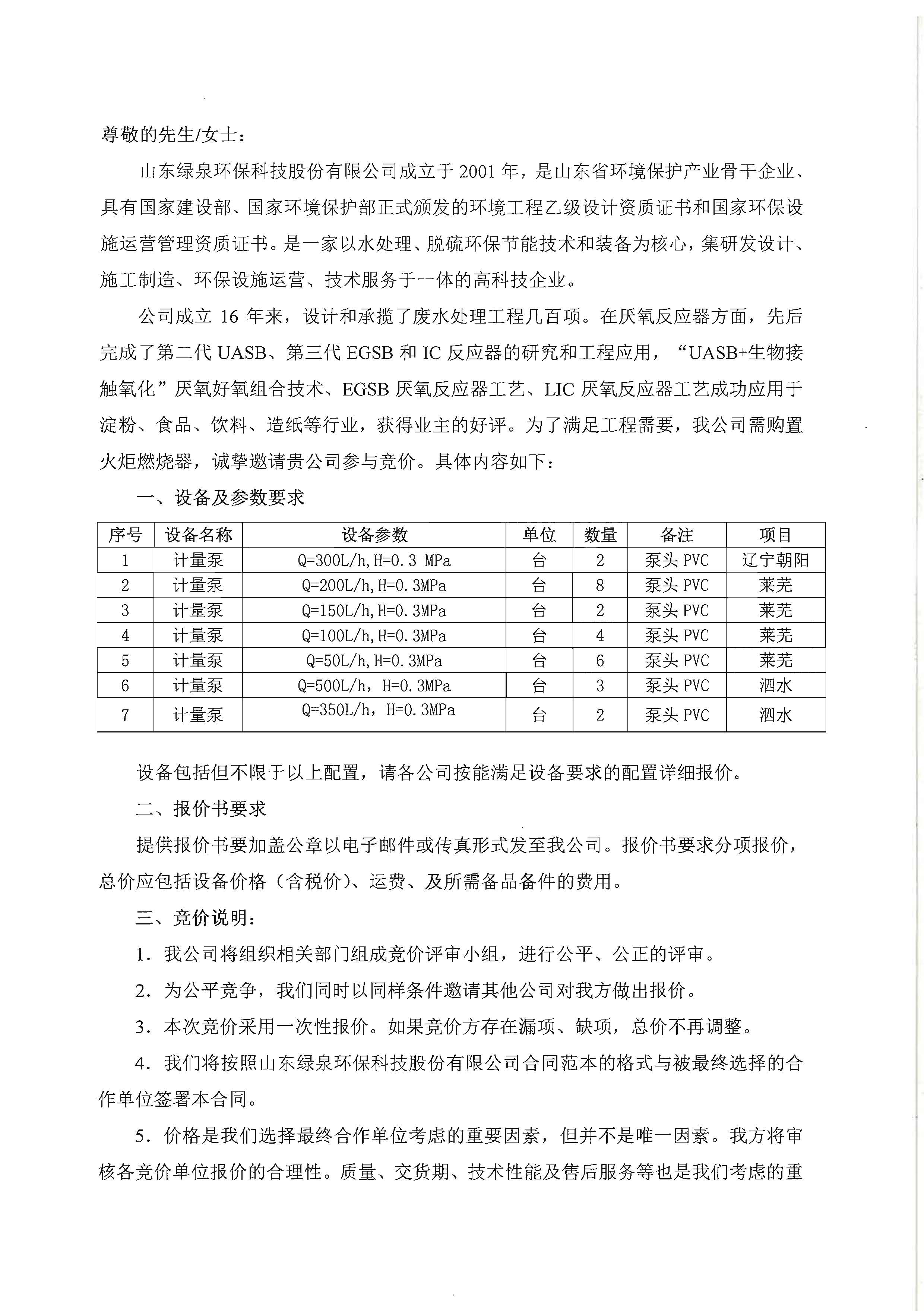 计量泵竞价函