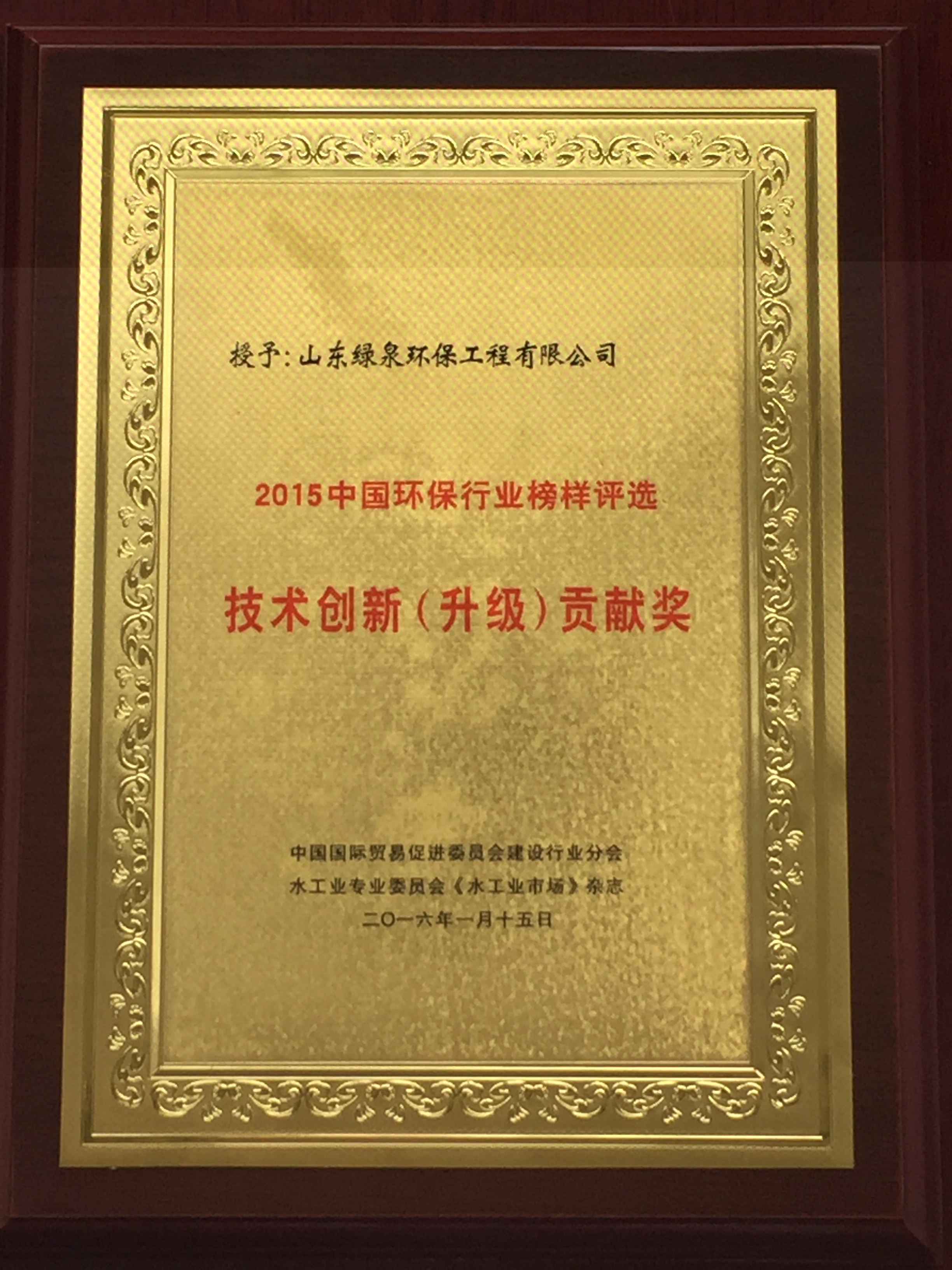 近日,我公司参加了由国家建设部主管的《水工业市场》杂志与焦点水网发起的"2015中国环保企业行业贡献评选"活动,经过初选、资料提交、评议等多个环节,经过全国几百家同行的激烈竞争,凭借我公司在高效厌氧技术方面的优势,通过层层评选,获选技术创新(升级)贡献奖。本次荣膺技术创新(升级)贡献奖,是对我司先进技术的肯定,也彰显了我公司在环保行业的领先优势。